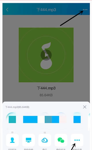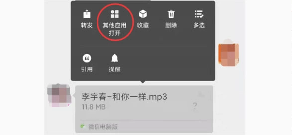 首先在微信或QQ里找到要接收的音频文件,点击打开播放后,选择右上角的按钮或者长按屏幕调出更多功能选项。