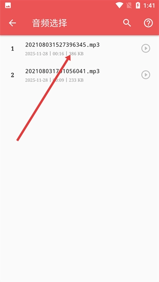 在【音频选择】页面,点击目标音频文件。