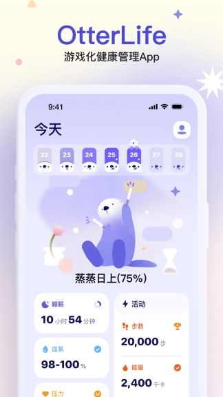 OtterLife安卓借助游戏化手段助力用户轻松进行健康管理,用户能通过完成健康任务来记录睡眠、运动、压力、饮水等健康数据,还可以按日、周、月来追踪健康状况,从而更全面地知晓自身健康的变化情况,让健康管理变得既有趣又富有挑战性。