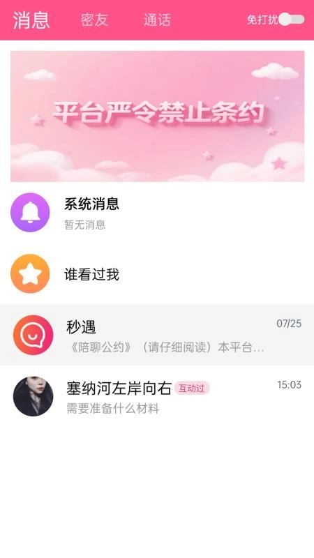 会实时推送互动消息、系统通知与通话邀请,保证您能第一时间查看并及时回复。