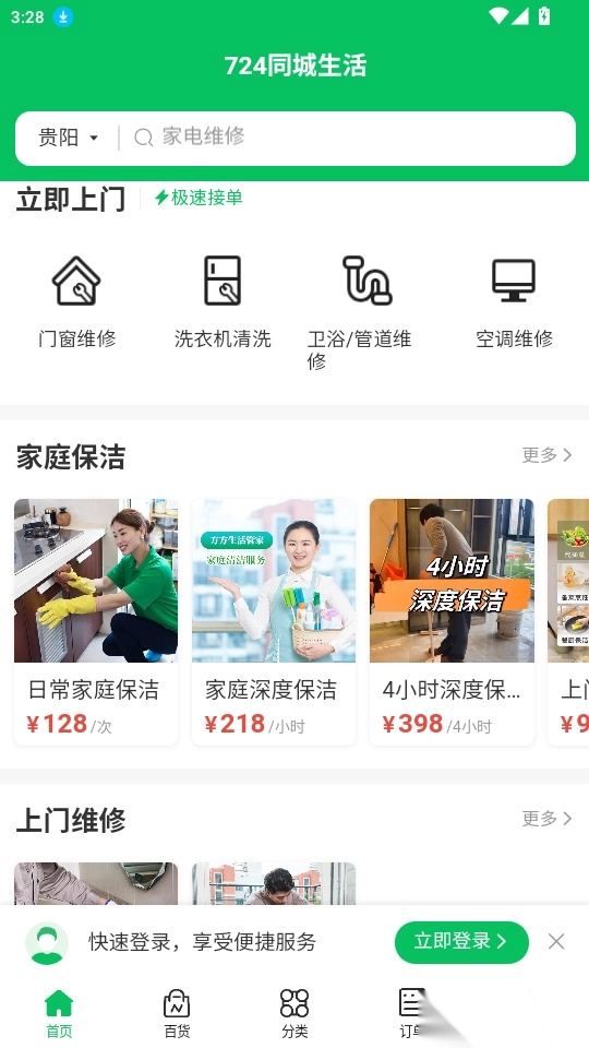724同城生活是一款聚焦同城生活上门服务的应用,集成了家庭保洁、上门维修、家电清洗等丰富服务类型,用户可按需挑选,全方位覆盖生活中各类上门服务场景,助力用户轻松化解日常难题。平台配备专业服务人员,上门服务有保障,能快速响应并处理订单,让用户尽享品质生活,体验上门服务的便捷。平台价格公开透明,用户可对比价格选择高性价比服务预约下单,同时还有多重优惠福利,让用户以优惠价格畅享各类生活服务。有需求的用户不妨前来体验!