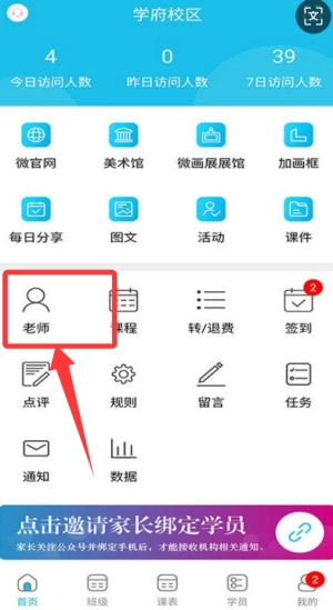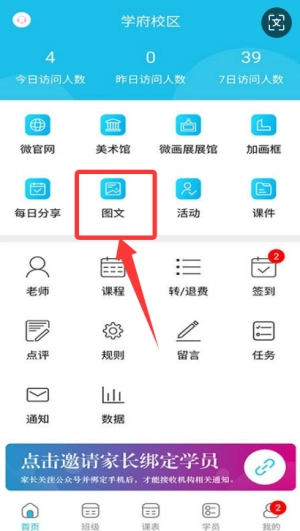 家长登录平台进入主页后,点击课程表或通知栏,即可查看老师发布的最新课程安排与校园动态。