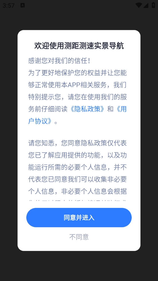 首先在本站安装测距测速实景导航应用,并同意相关的隐私政策与用户协议。