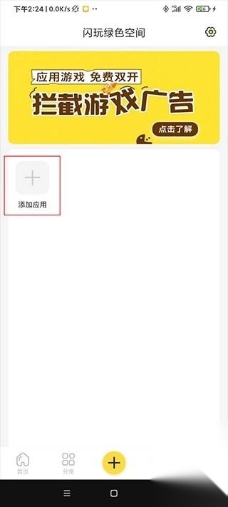 点击下面的加号,闪玩绿色空间;