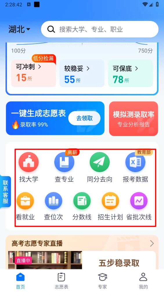 只需一键输入高考成绩,借助大数据分析就能完成高校志愿的智能填报,让你的志愿选择更具科学性与精准度。