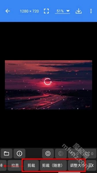 进入编辑页面后,从底部向左滑动找到【剪裁】或【调整大小】功能,这里以【调整大小】为例进行说明。