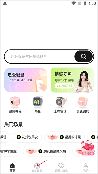 教你掌握恋爱里的说话艺术,还有各种聊天技巧、土味恋爱故事、网红热梗,都等你来发现和探索。