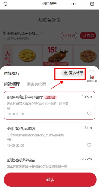 若想切换餐厅,只需点击界面上的“更多餐厅”,即可查看其他位置的餐厅。
