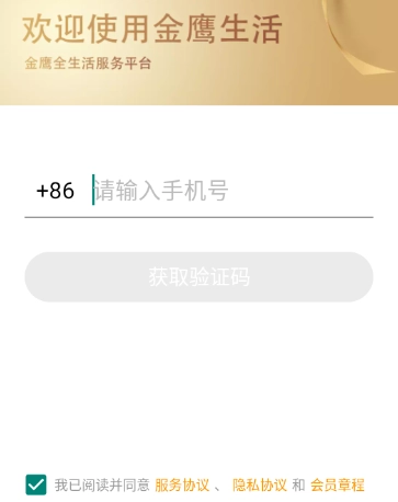 安装并打开金鹰生活,然后用手机号进行注册登录