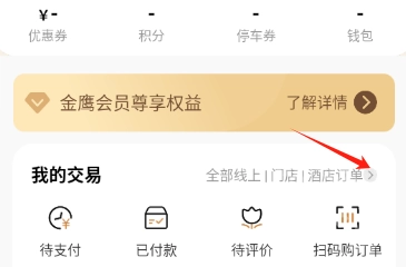 点击金鹰生活底部的“我的”,进入个人中心页面后,找到“我的交易”,点击其右侧的>符号。