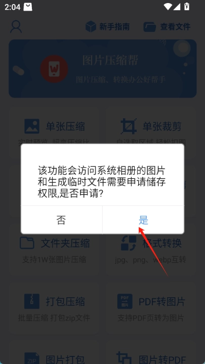 打开前需要先授权访问系统相册,点击是