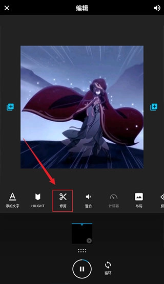 进入编辑界面后,选择“修剪”功能。