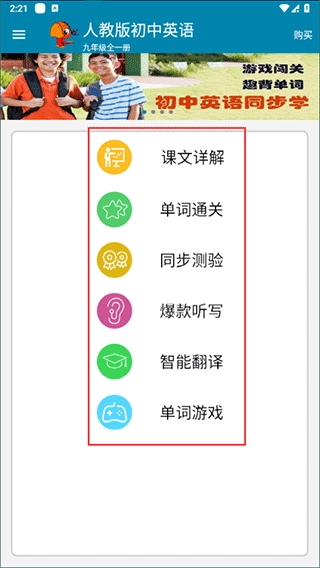 完成课本选择后,你会看到课文详解、单词通关等一系列功能。