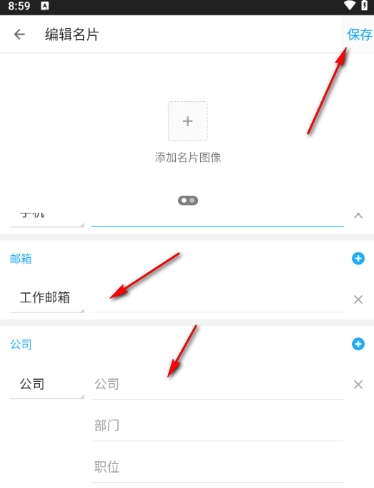 识别完成后,既可以在校对界面直接选择保存,也能在后续通过名片夹进行编辑并保存。