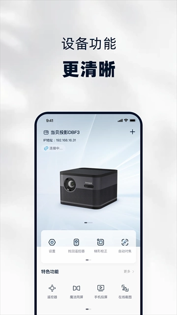 当贝家是当贝遥控的手机客户端,由于它可以连接智能设备进行远程操控,因此也被称作当贝遥控。该客户端不仅支持音量调节、快进、返回、切换下一集等基础遥控操作,还具备自动对焦、梯形校正、一键清理以及儿童模式等实用功能,有需求的用户可以放心使用。