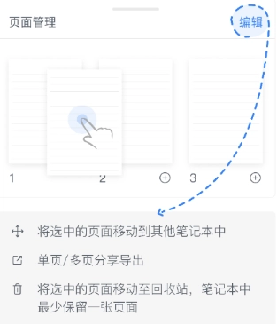 进入页面管理界面后,长按页面并拖动能够调整页面的排列顺序;点击“编辑”按钮,即可显示更多操作选项。