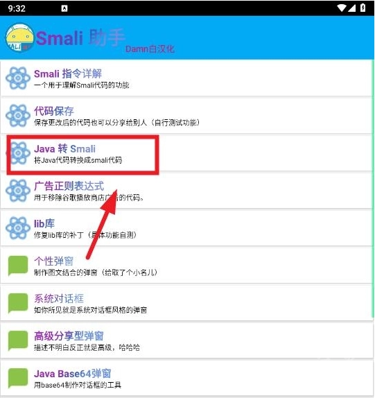 打开魔趣网,进入Smali Helper应用,挑选需要的功能(这里用JAVA转smali来举例)。