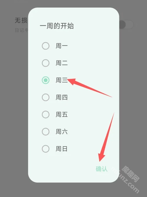 进入后选择【一周的开始】。