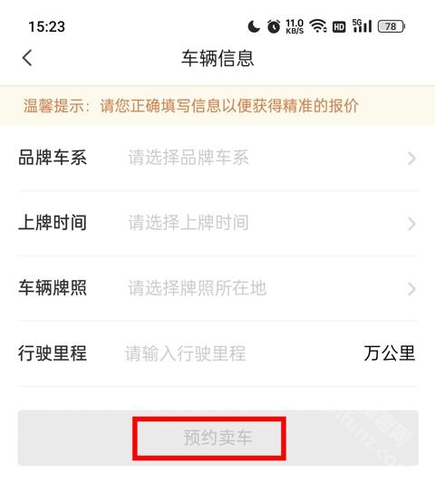 提交意向信息后,需进一步填写车辆的品牌车系、上牌时间、车辆牌照、行驶里程等详细信息,随后点击预约卖车,就能完成信息上传。