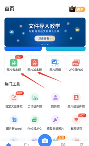首页具备图片去水印、添加水印、压缩以及格式转换等功能。