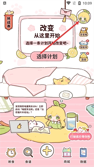 打开柠檬轻断食最新版,点击下方【食谱】图标。