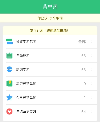 单词复习:依据记忆曲线的科学规律规划单词复习方案,复习时呈现包含单词的情境原句,助力您轻松愉悦地记忆单词。