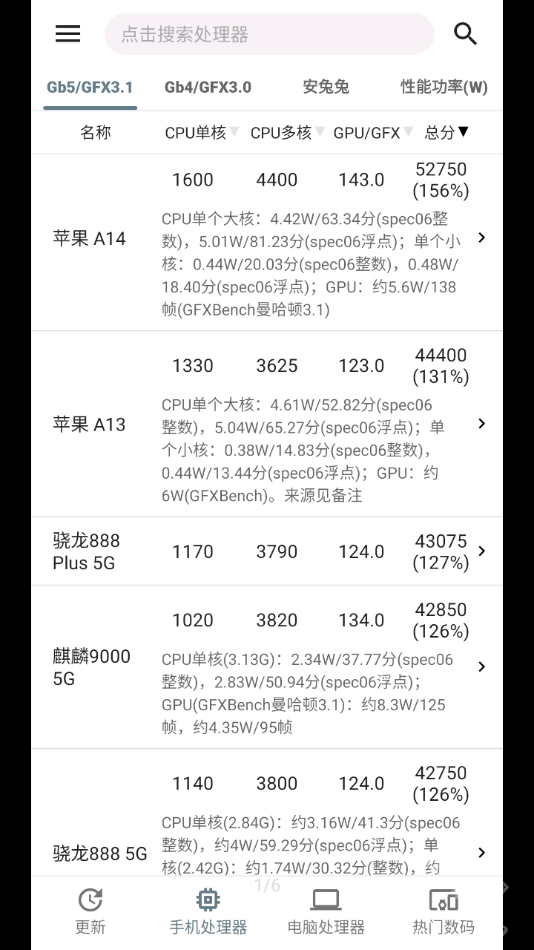 处理器性能:给出处理器在Geekbench平台上的单线程、多线程跑分情况,同时提供GFXBench曼哈顿场景下的图形帧数排名,以便用户清晰掌握处理器的性能表现。