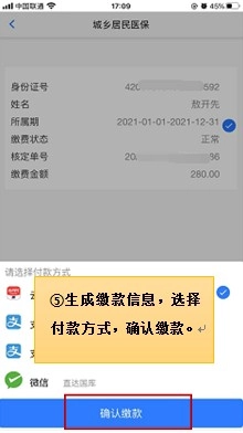 生成缴款信息,再次确认信息准确无误后,挑选对应的付款方式,点击确认缴费按钮完成操作。
