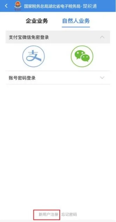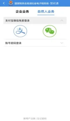 “楚税通”设有自然人业务与企业业务两类注册及登录途径。