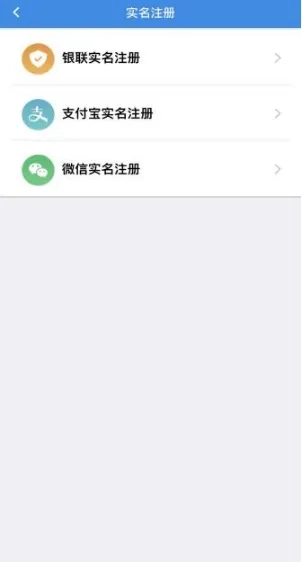 新用户可通过三种方式完成注册,分别是银联实名注册、支付宝实名注册以及微信实名注册。