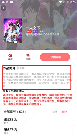 选中目标章节后点击进入,即可开始免费在线阅读;
