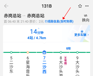 你可以先点击想要查看的公交线路,进入对应的公交路线界面后,再点击蓝色字体显示的“线路信息(含时刻表)”选项。