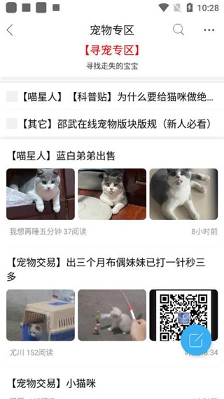 2、宠物专区可发布寻宠启事或交流养宠经验