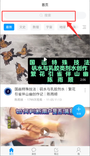 于首页搜索框输入关键词,查找学习各类知识内容。