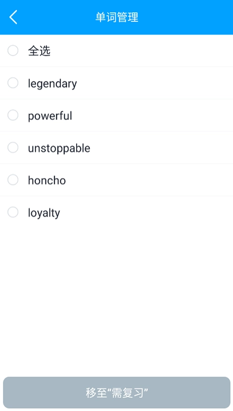最后选择单词,点击移至需复习即可重新背书了。