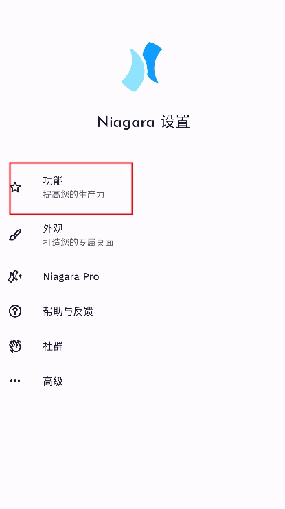 随意挑选一个应用图标,长按该图标后会弹出图示信息,接着点击Niagara设置选项即可。