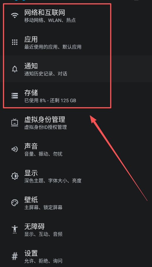 接着,打开手机的系统“设置”界面,在“显示”选项里开启深色主题并调整字体大小,再到“壁纸”设置中分别更换锁屏壁纸和桌面壁纸。