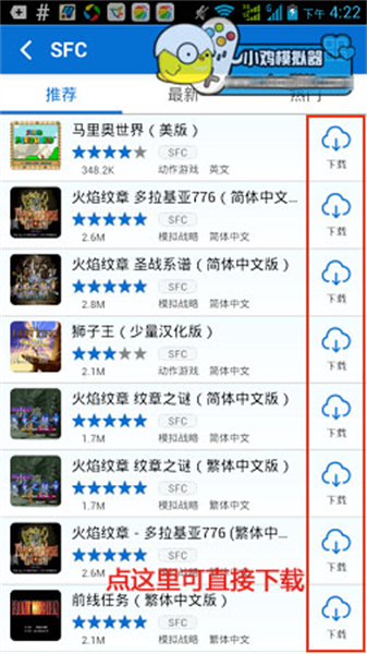 在魔趣网安装好小鸡模拟器后,点击进入软件,在推荐栏目中能看到丰富的游戏资源,大家直接点击右侧的快速按钮就能开始游戏。