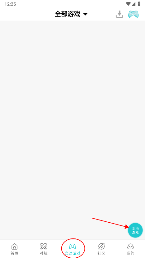 然后点击右下角的本地游戏,需要注意的是要将本地游戏存放在指定目录:/emulated/0/Games/平台