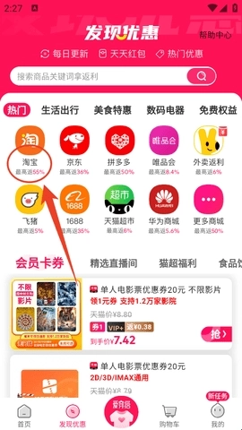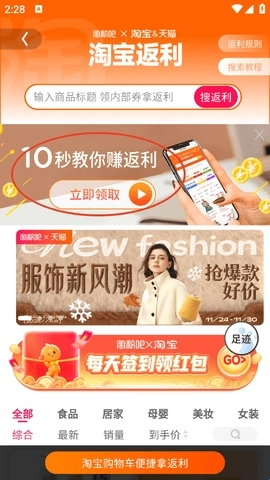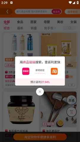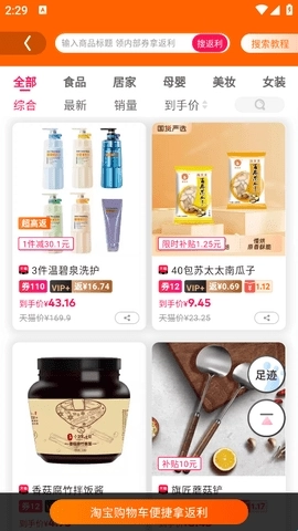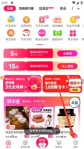 往下翻页就能看到不少折扣商品和返利商品,你可以看看有没有想入手的,要是没找到直接搜索就行。