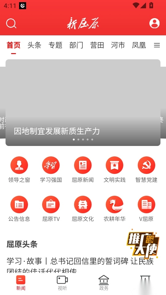 新屈原最新版本是一个具备特色新闻快讯与资讯报道功能的平台,该软件包含的新闻要闻和动态信息极为丰富,能够满足用户多方面的线上新闻阅读需求,同时还覆盖了大量生活类服务项目,各类便民服务、线上办事服务以及娱乐休闲服务都很完备;有需要这款软件的用户可以到本站免费获取。
