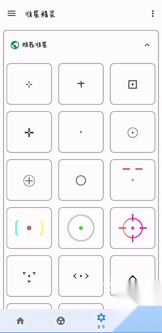2、在【推荐准星】栏里有多种准星样式可供选择,要是没有合心意的,也能自行进行DIY设置。