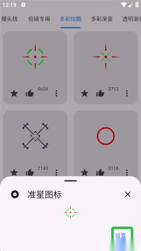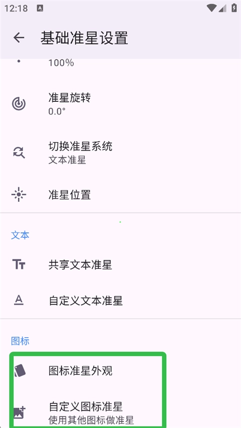 4、向下滑动到图标区域,既能挑选预设好的准星图标,也能自行选择自定义图标。