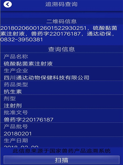 3. 本应用程序所支持的全部二维码,均严格遵循国家兽药二维码相关标准,且已通过中国兽药检验所的正式认证。