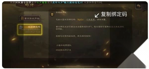 3、在邮件里找到对应的绑定码,复制后回到三国咸话中填写,就能完成绑定。