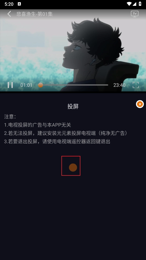 3、若要退出投屏,请使用电视端遥控器返回键退出。