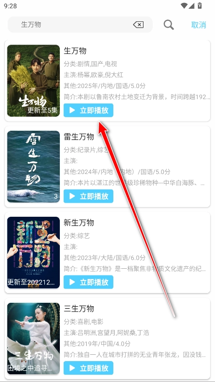 3.点击相匹配的剧旁边的立即播放。