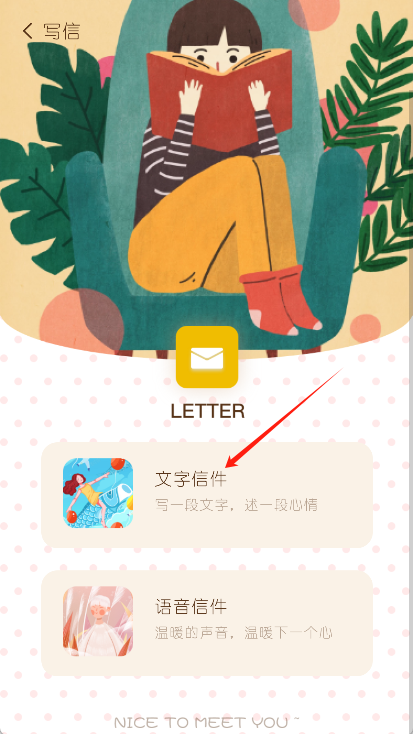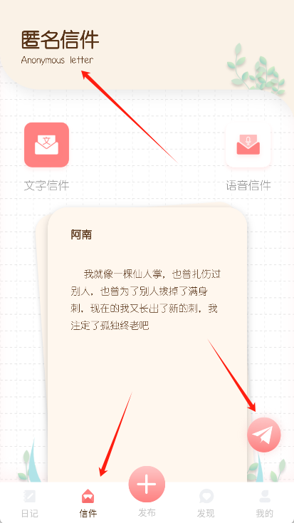 4、在匿名信件页面,选择发送文字或语音信件。
