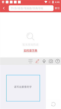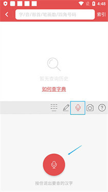 3、支持语音及拍照查询功能,点击方框内的话筒图标,按住后说出需查询的汉字即可。