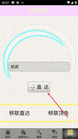 4、在【移联服务】的搜索框中输入【旅游】这一关键词,接着点击【直达】按钮,就能获取到相关的旅游类移联服务内容了。